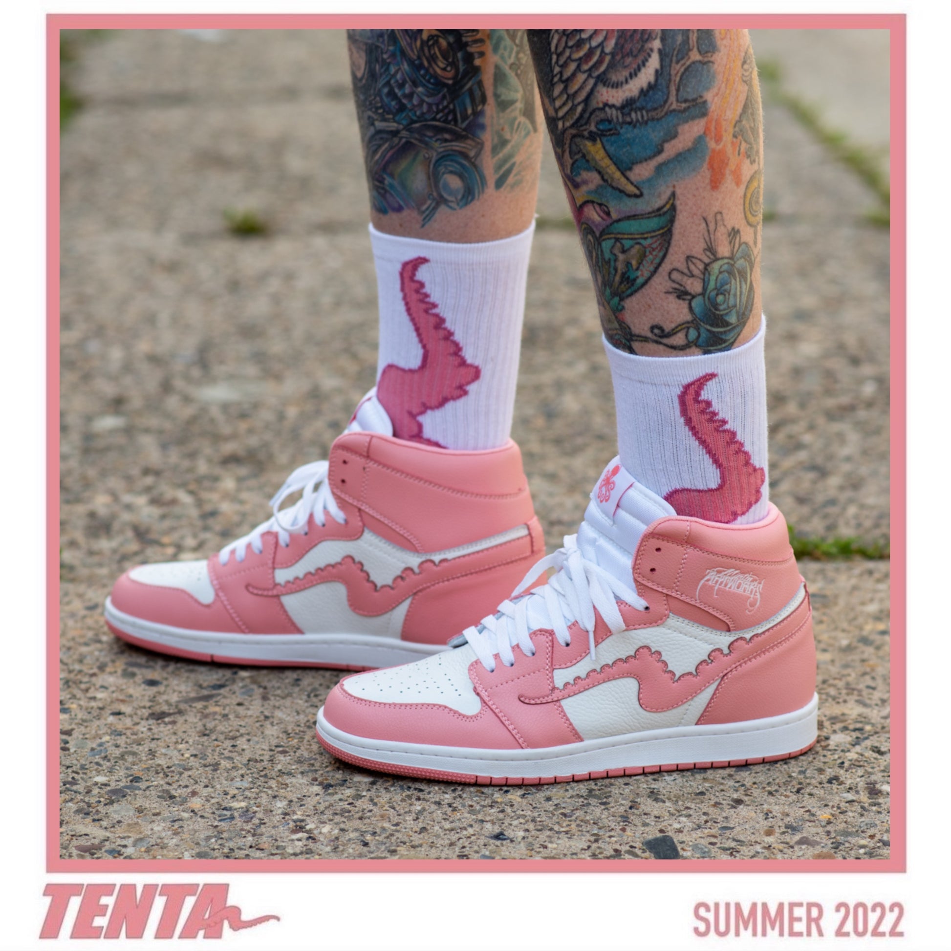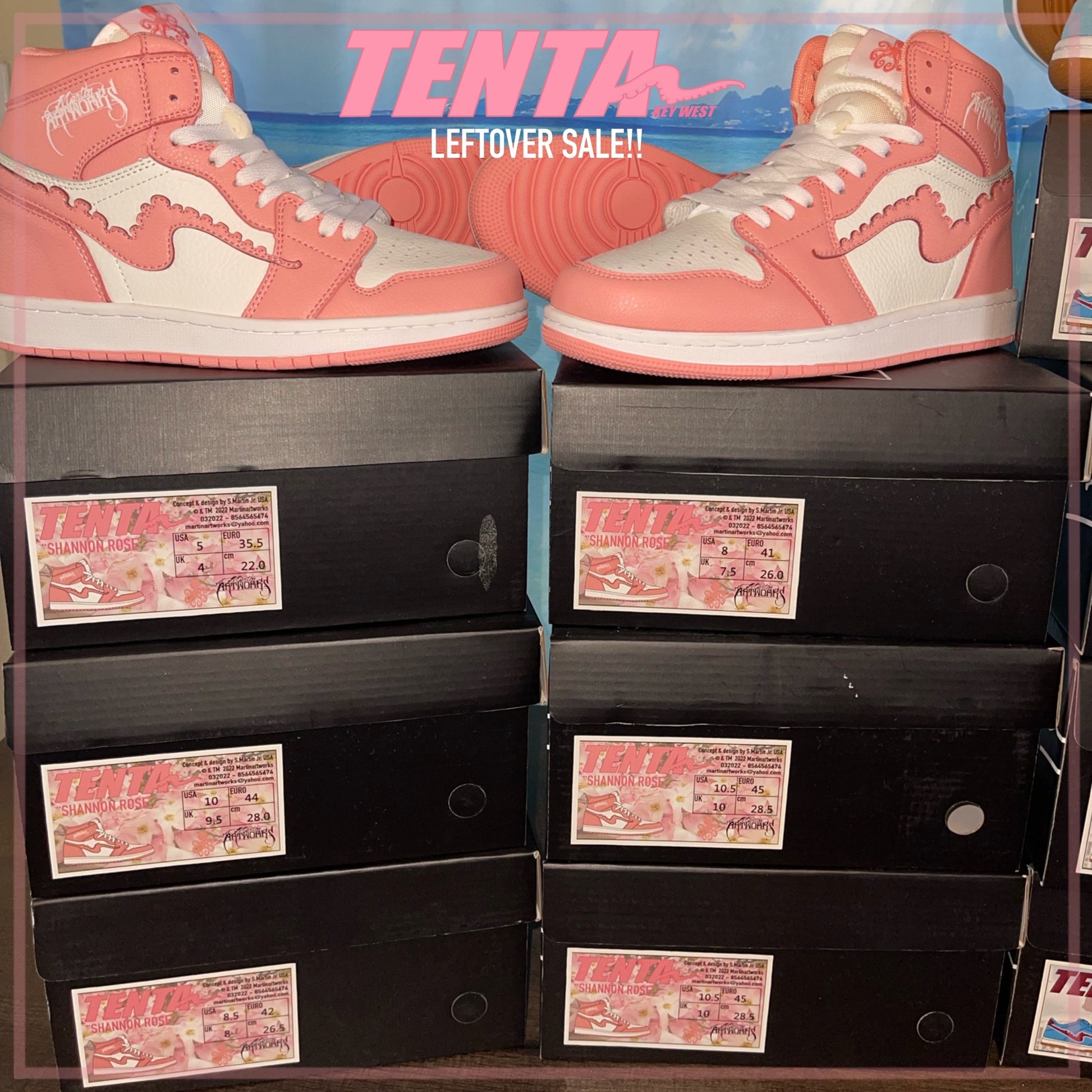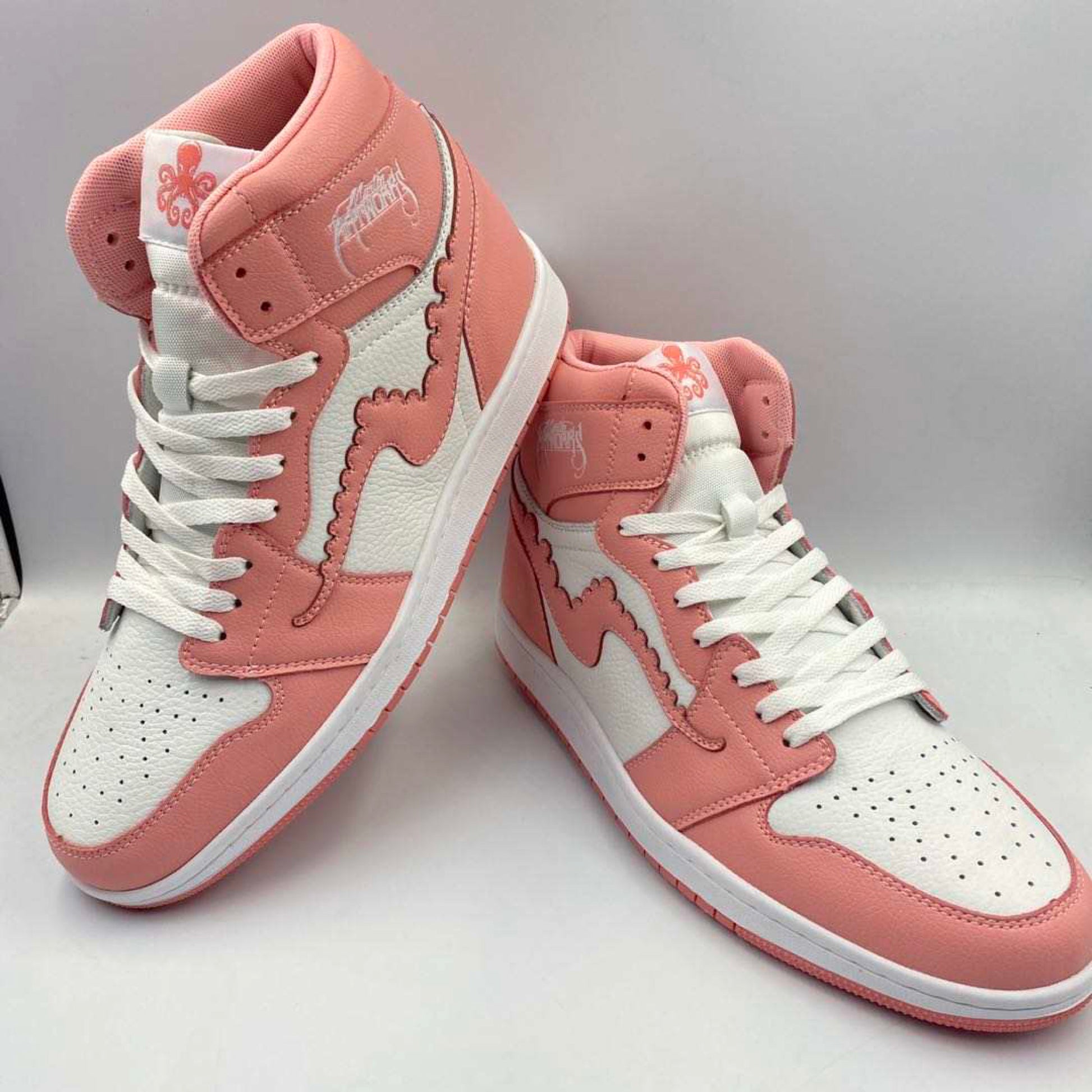 Classic style, reimagined by Martinartworks from the island of Key West. White and "Shannon Rose" tumbled leather uppers. Tenta tentacle logo on the sides, classic tentacle artwork on the insoles and an extra pair of "Shannon Rose " laces.THIS IS OUR MOST REQUESTED MODEL THAT HAS BEEN RETIRED. THIS PURCHASE IS THE LAST OF OUR INVENTORY. ALL SALES FINAL, NO RETURNS OR EXCHANGES ON THIS ITEM!