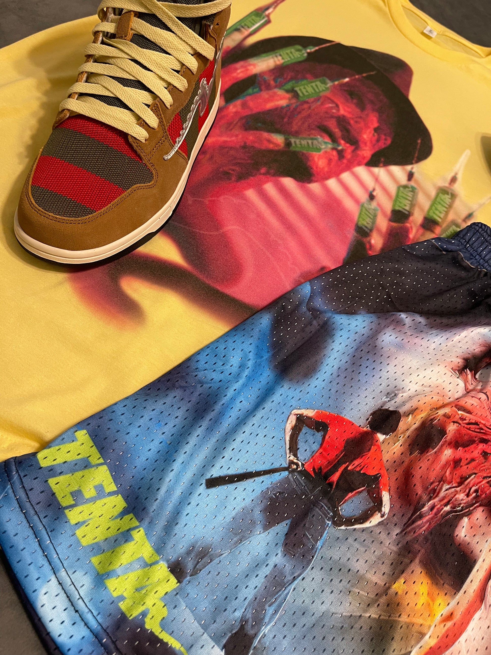 TENTA mesh shorts with drawstring and pockets. The artwork on these high quality printed mesh shorts is super detailed!! Lightweight, mesh material that is very breathable and comfy! Unisex sizing S-XXL.